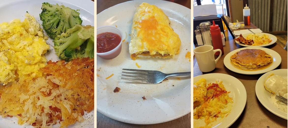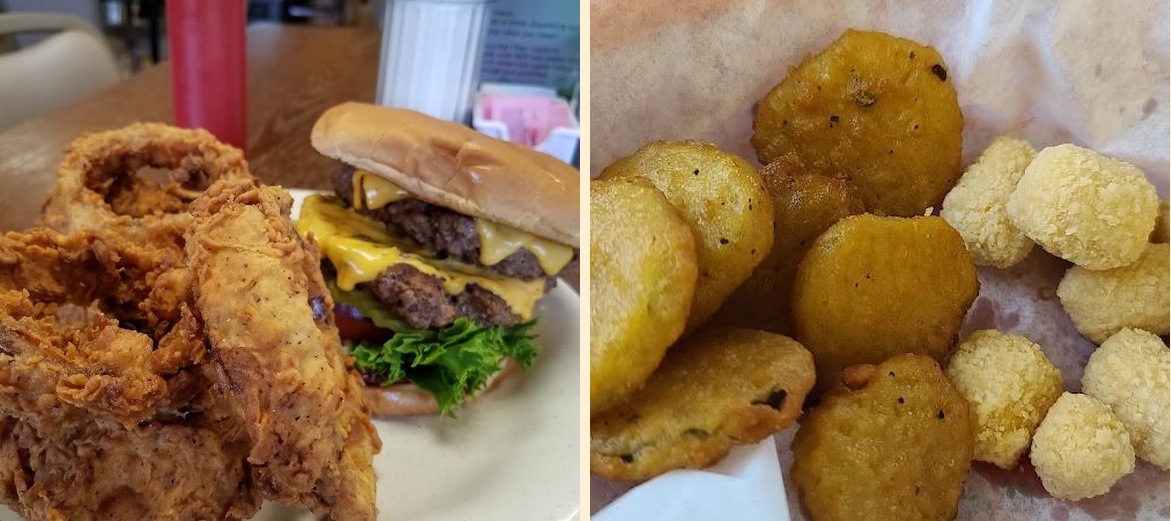 MJays's Diner offers fantastic Chicken Fried Steak and delicious Cheeseburgers. Breakfast lovers should try the M-Jay's Plate or the build-your-own omelet. Don't forget the crispy Onion Rings as an appetizer!